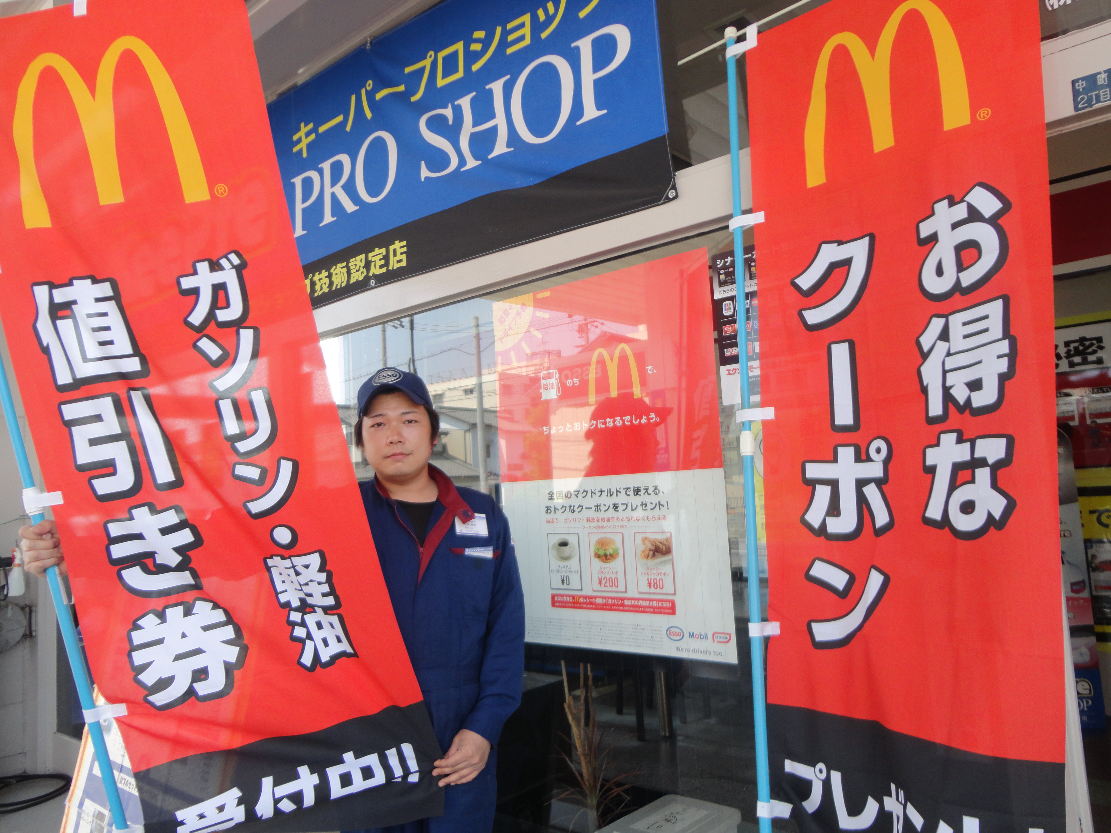 弊社ESSOのサービスステーションでは、5/14より5/27までレシートの裏面が全国のマクドナルドで使える、お得なクーポンをガソリン・軽油ご利用のお客様にプレゼントします。