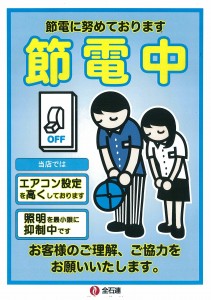 具体的には過度な照明の節約、店内のエアコン温度を節電のための適正温度に設定してまいります。