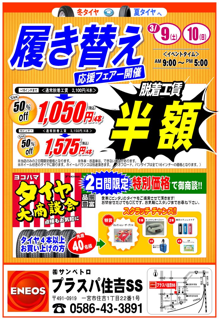 [プラスパ住吉SS]3月9日(土)10日(日)タイヤ大商談会を開催します