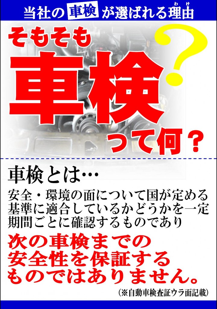 弊社では全てのサービスステーションで「車検」の取り扱いを行っていますが、お客様へ商品説明させて頂く際、全店同じ資料で説明をさせて頂いていますので本日はホームページ上でも紹介をさせて頂きます。