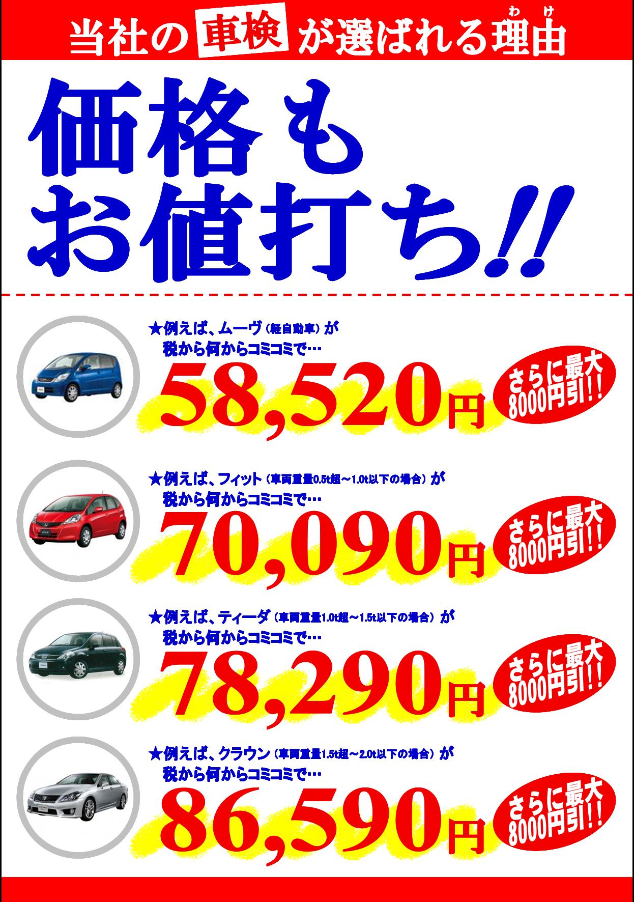 なお、’13年4月1日より自賠責保険の料金が値上がりしますので、値上がり後の価格表となっています。