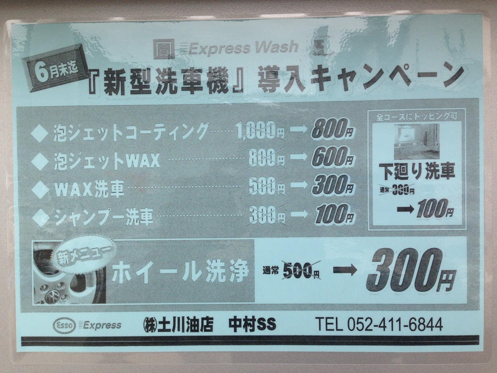 今回の新型洗車機導入を記念して写真の通り、各種洗車洗車コースを特別価格にて6月末までお試しいただけます。