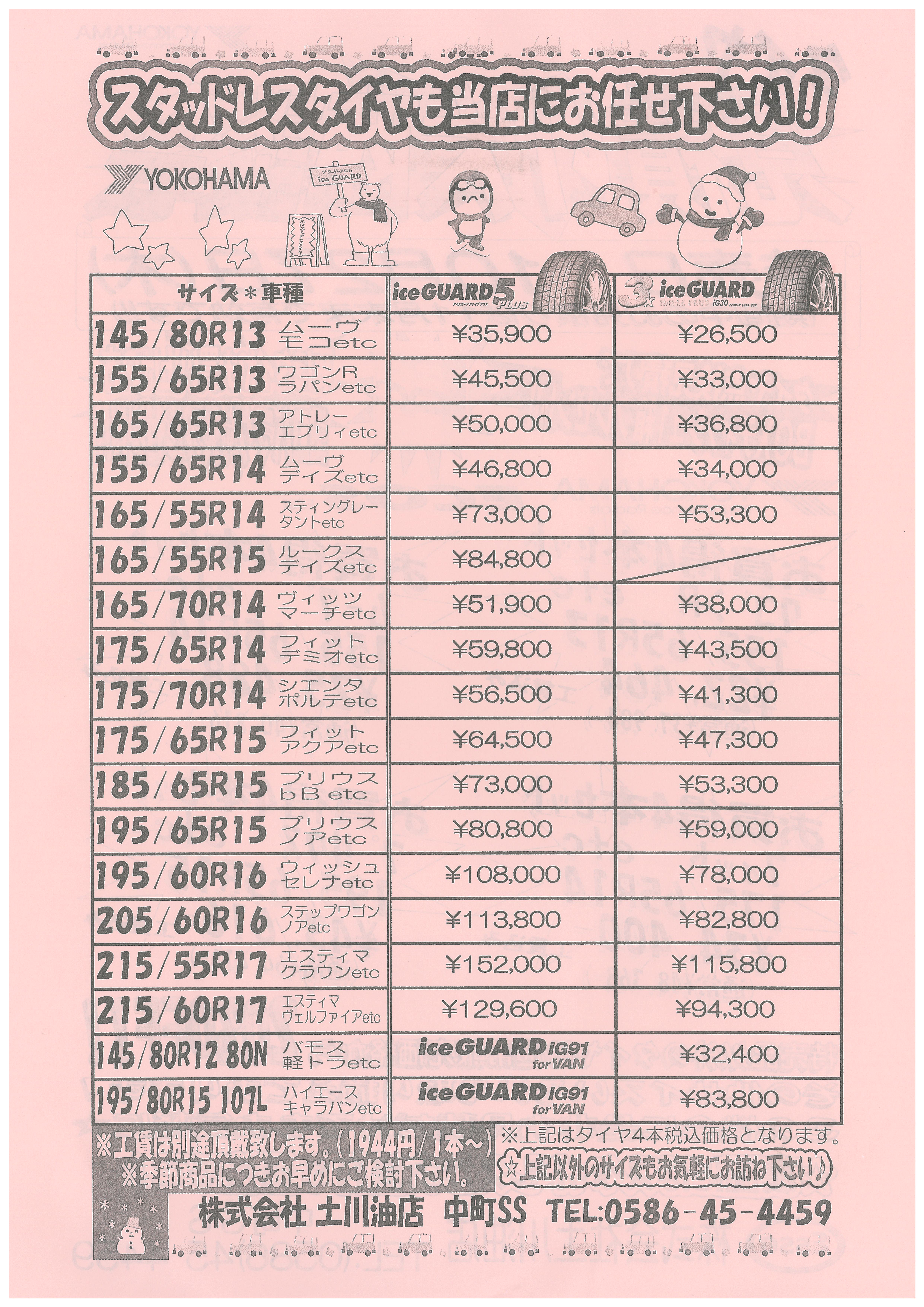 当日はヨコハマタイヤ様に協力を頂き、お得な価格で販売をさせて頂きます。