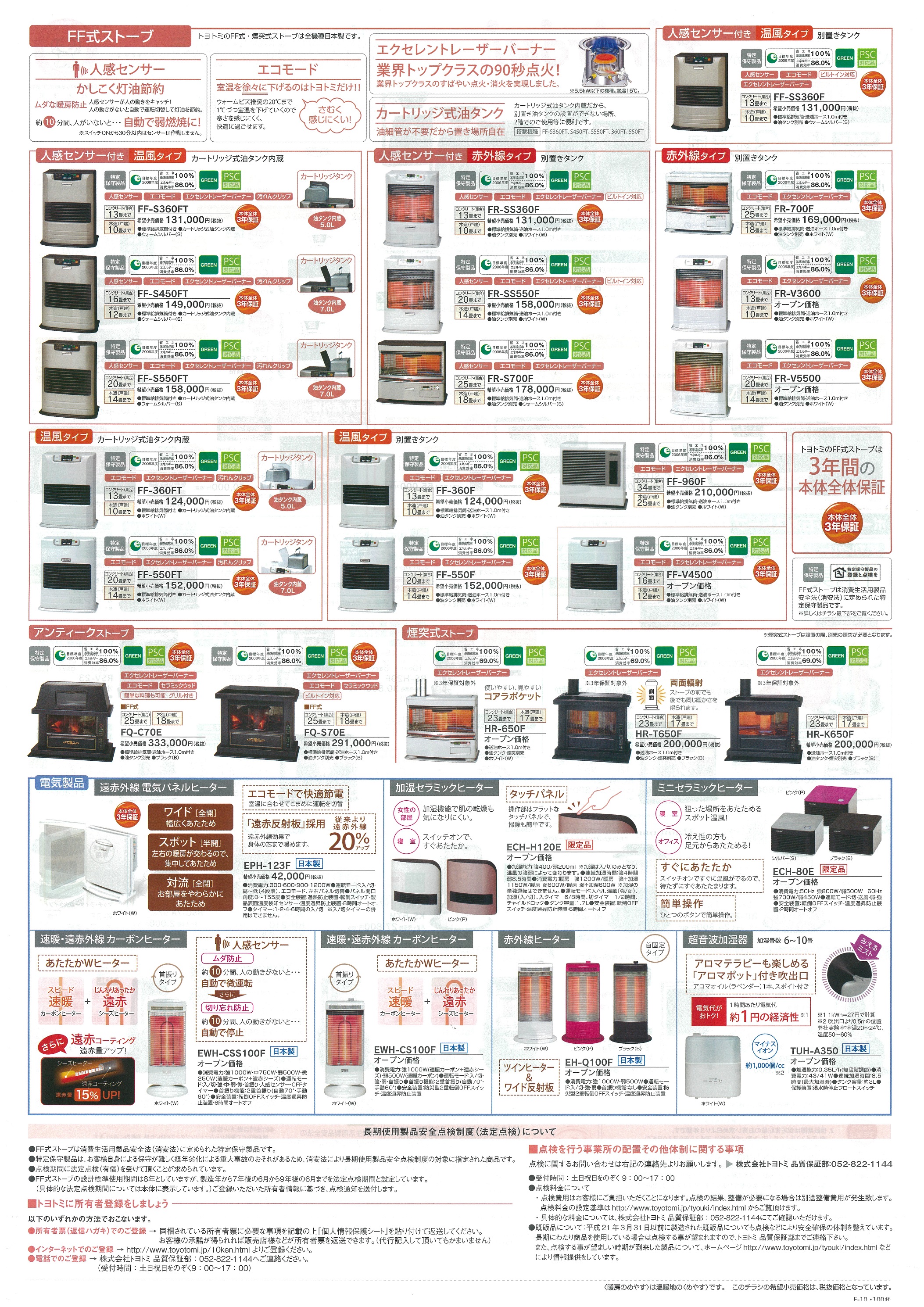 また、今回「石油ファンヒーター・ストーブ」の案内を作成させていただきました。
