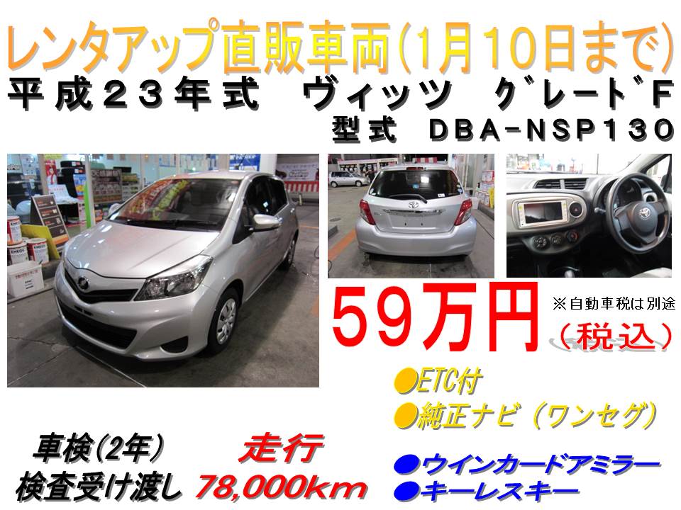 1台目はトヨタのヴィッツです。(こちらの車両は売約済みとなりました 12/9)