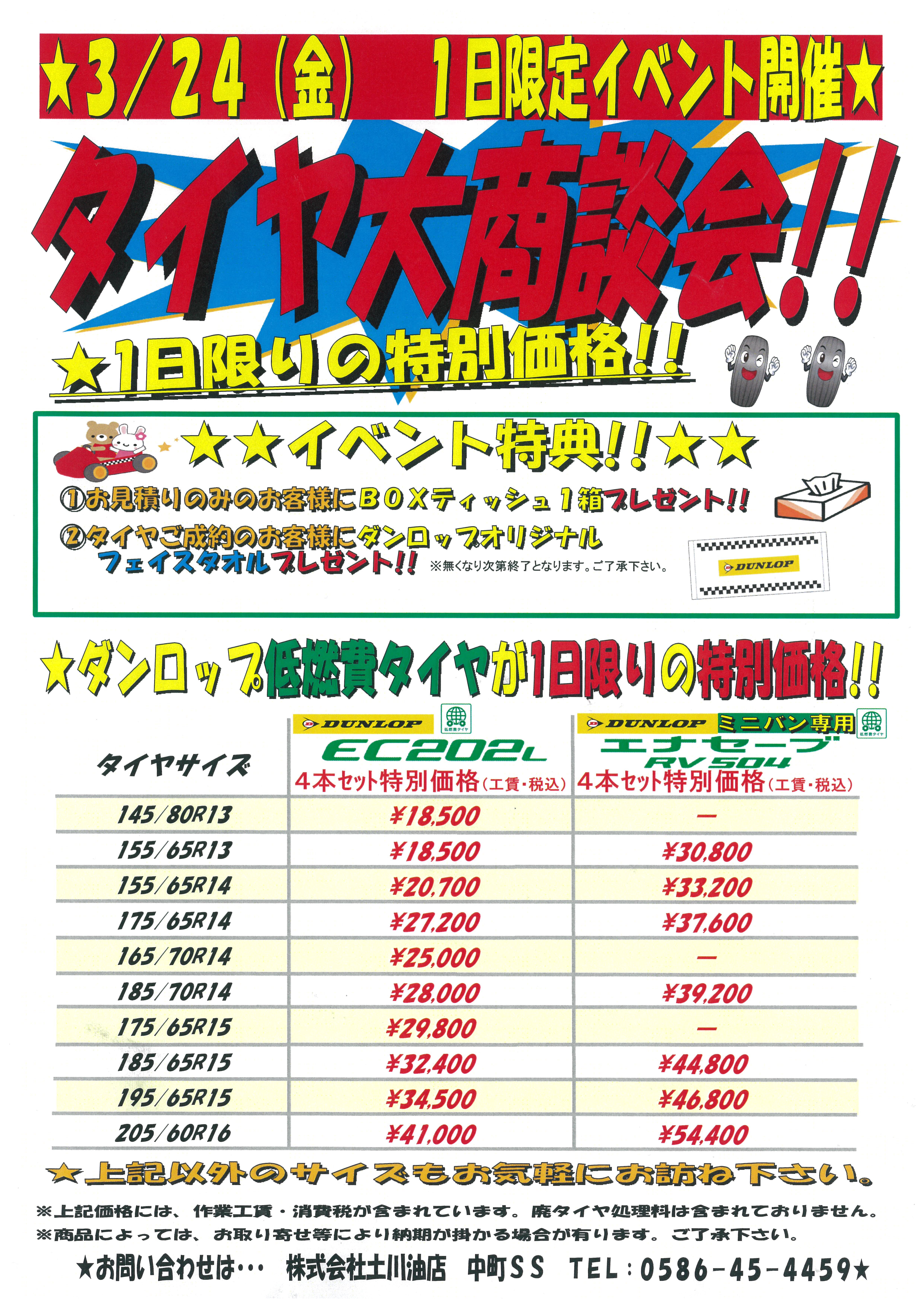 [中町サービスステーション]タイヤ大商談会開催のご案内(3/24)