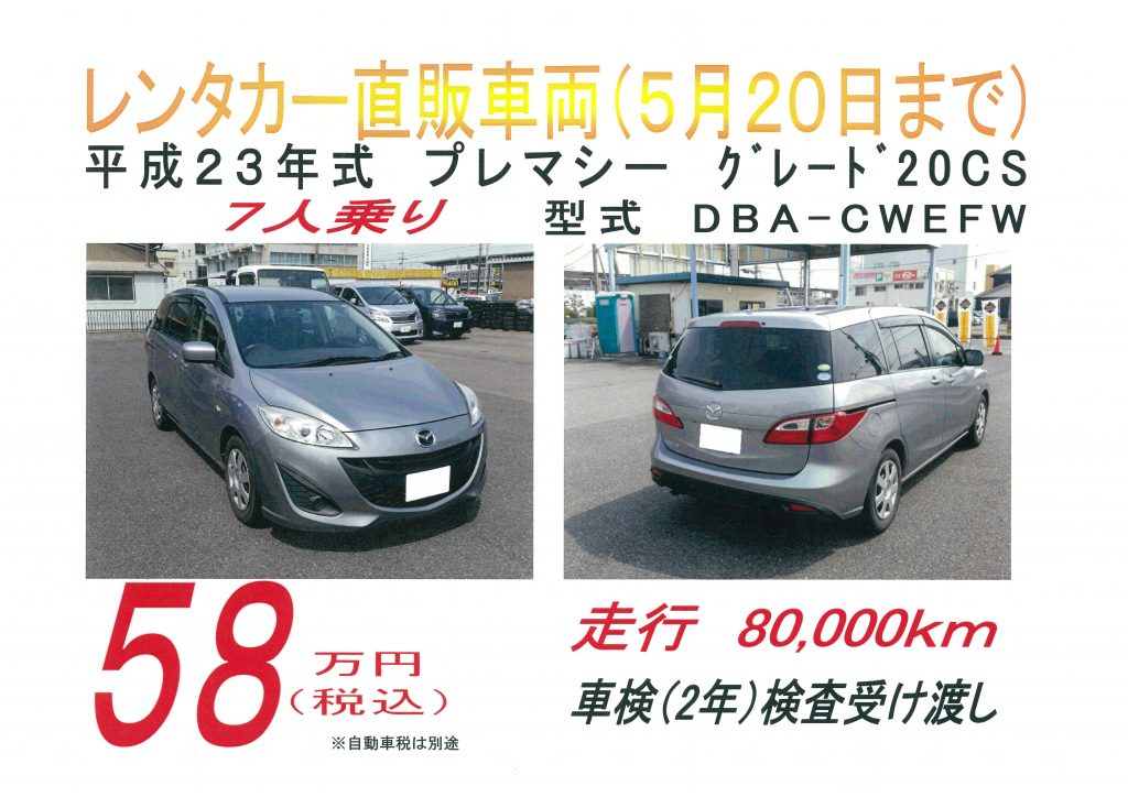 プレマシー グレード20CS 型式DBA-CWEFWです。