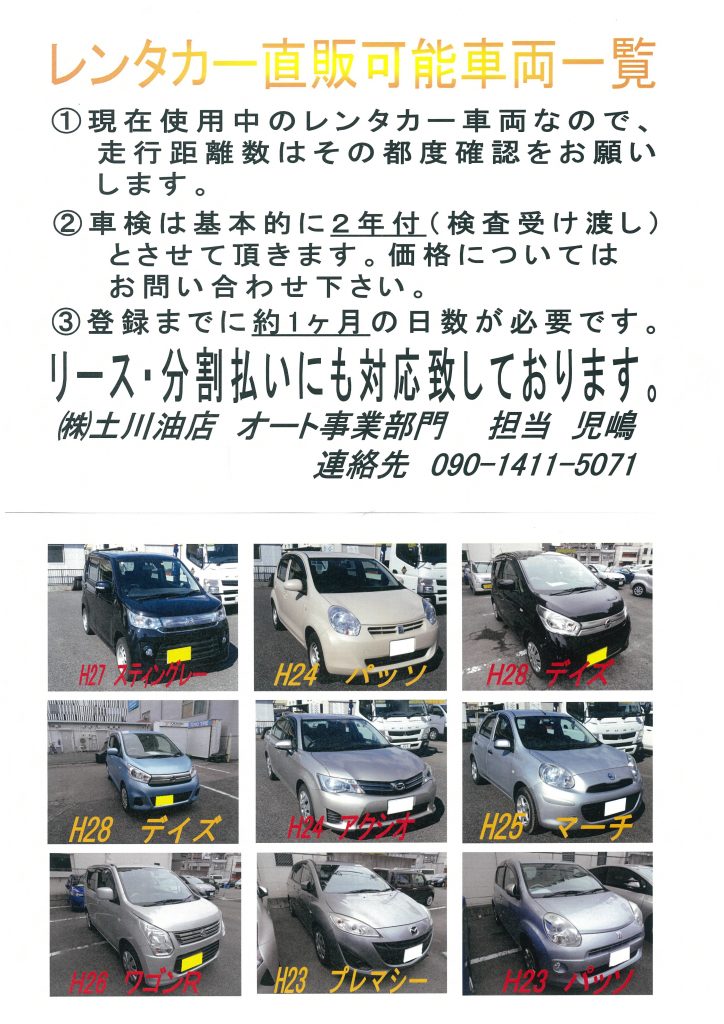 [車両売買部門]レンタカー直販可能車両のご案内(7/20現在)