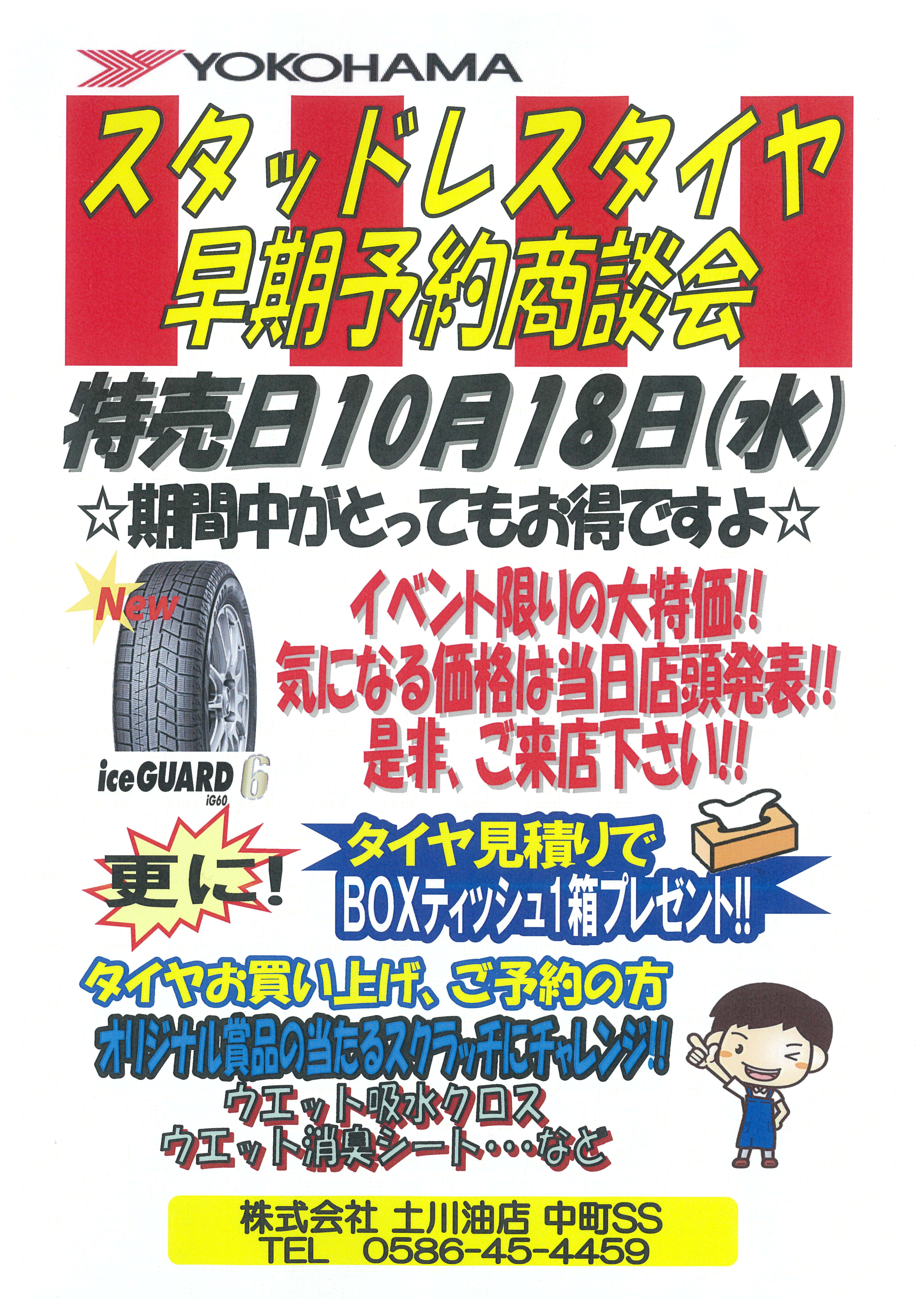 [中町サービスステーション]スタッドレスタイヤ早期予約商談会開催のご案内(10/18)