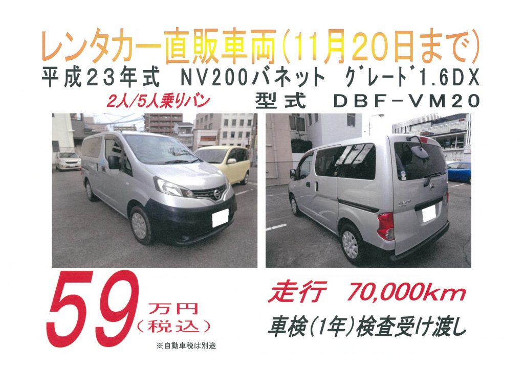 平成23年式 ”NV200バネットグレード1.6DX” 型式DBF-VM20 です。