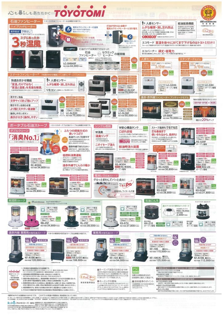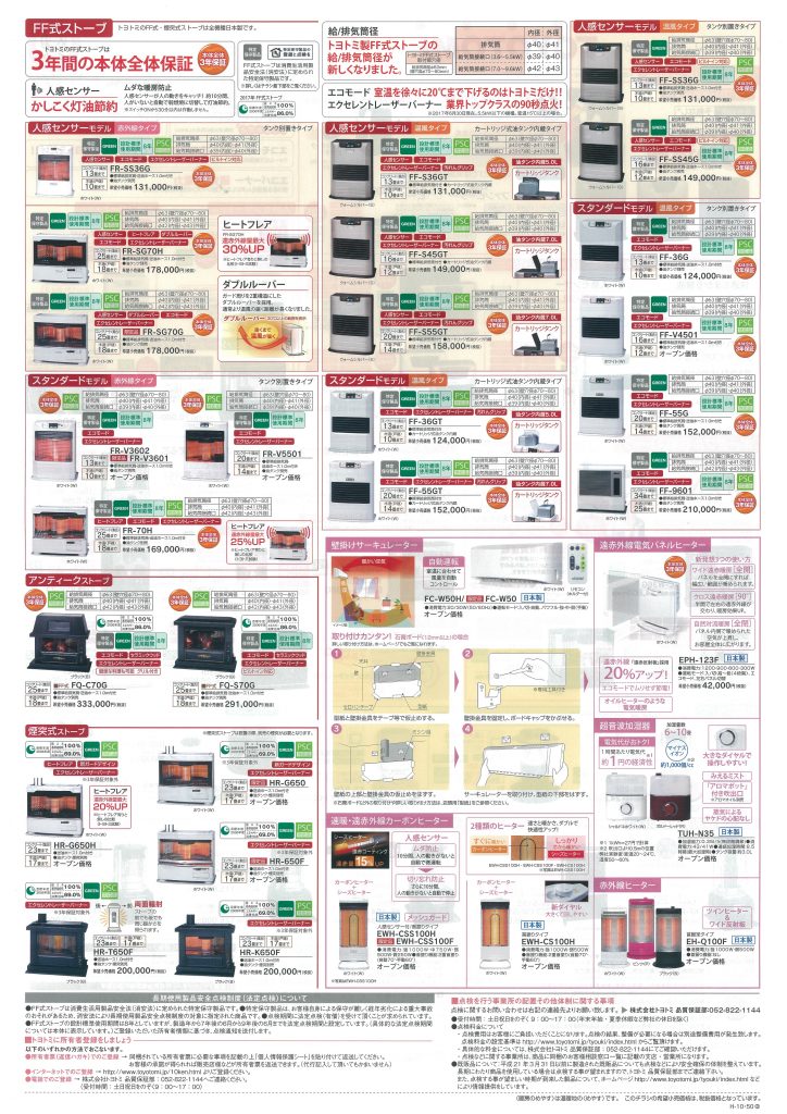 また、今回「石油ファンヒーター・ストーブ」の案内を作成させていただきました。