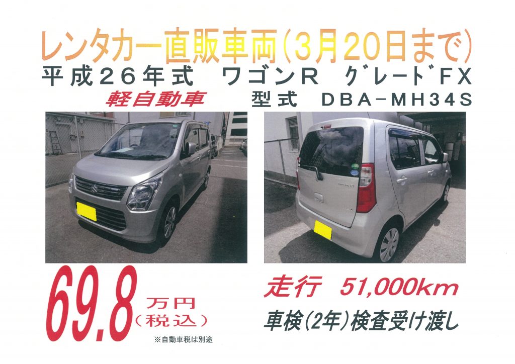 弊社の車両売買部門ではレンタカーとして私どもの営業所で利用している車両を中古車として販売しています。