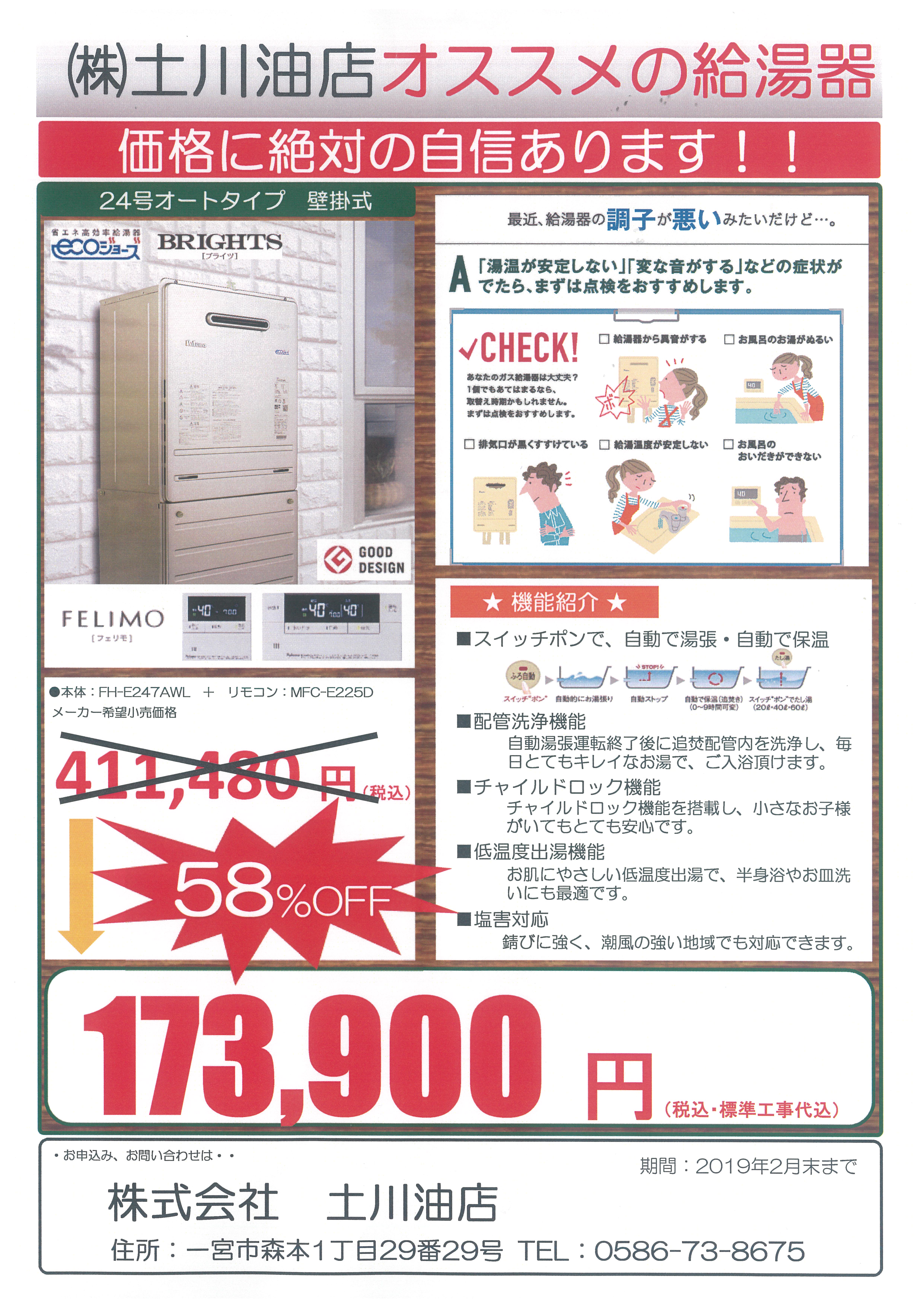 [ガス部門]給湯器のご案内(~2/28)