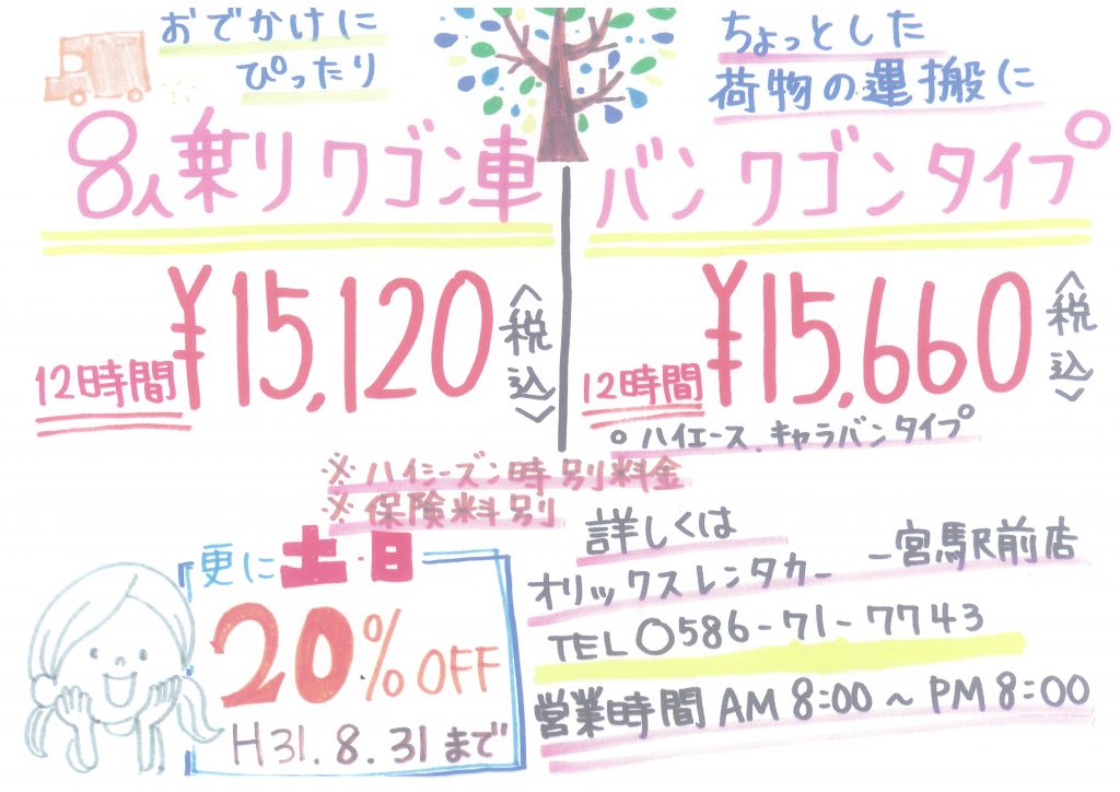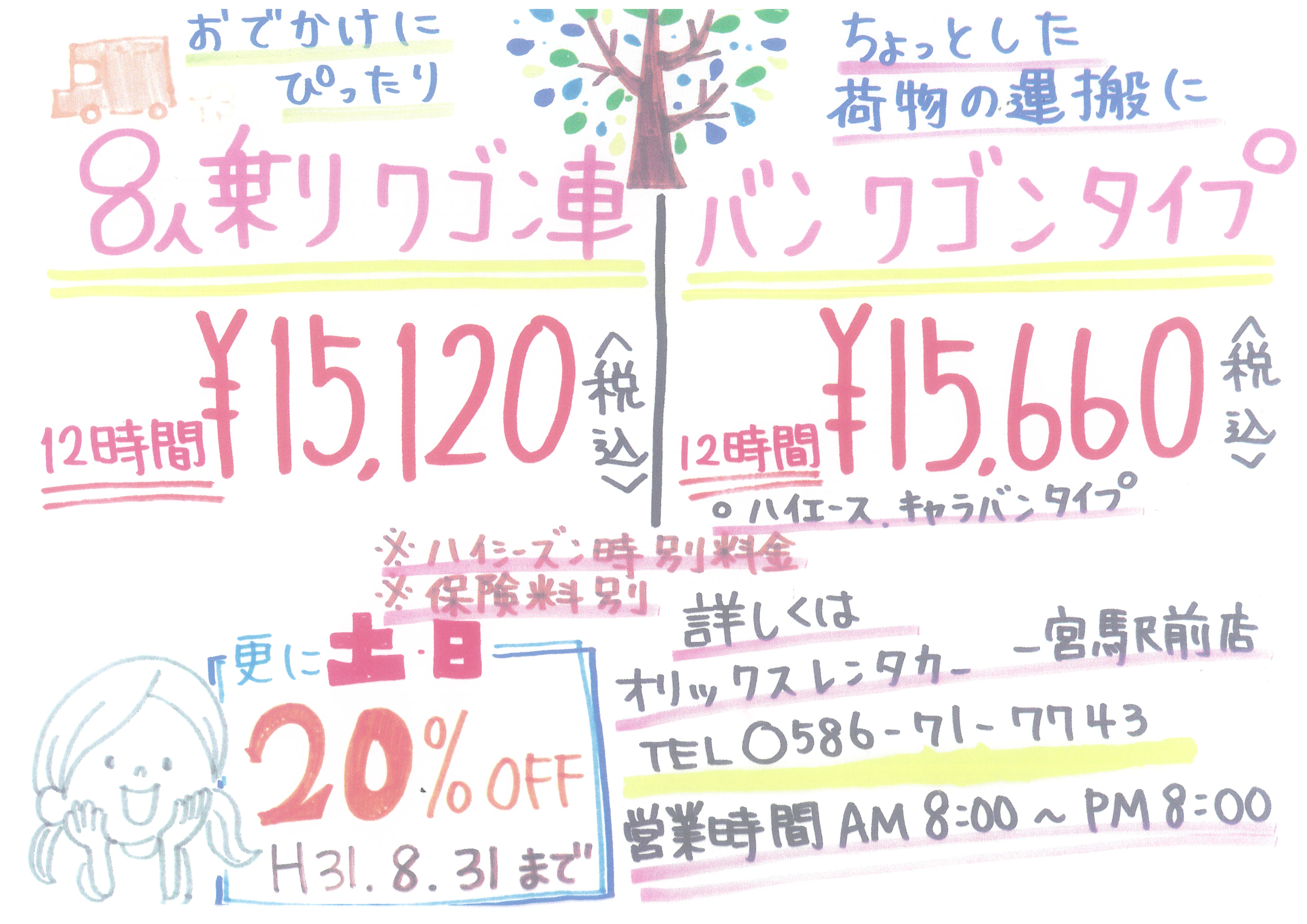 オリックスレンタカー一宮駅前店(栄3)ではレンタカーにワゴン車(8・10人乗り・バンタイプ)もラインナップしております。