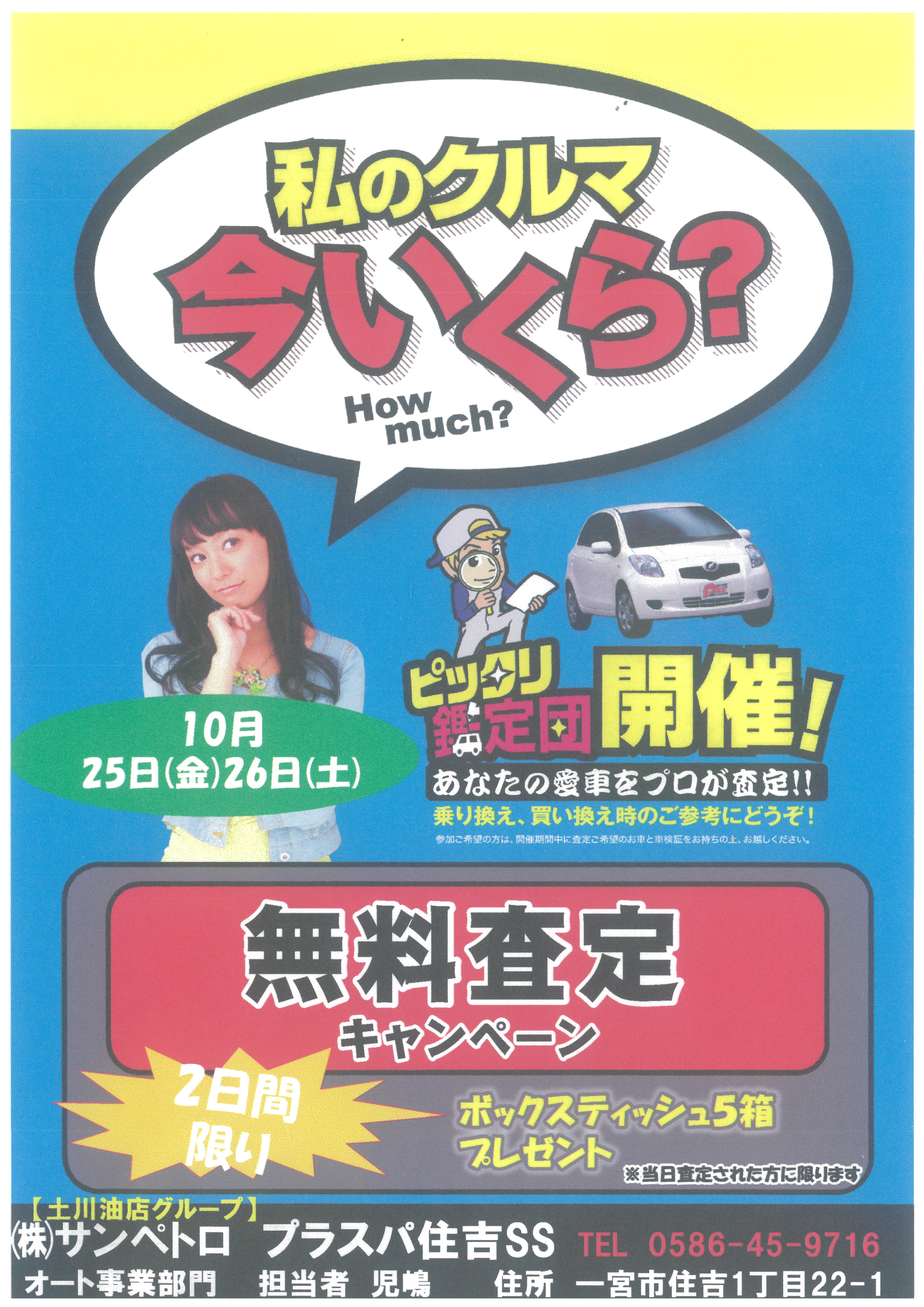 また併せて10/25(金)26(土)は車両売買担当者が常駐して愛車の無料見積もり査定会を開催します。
