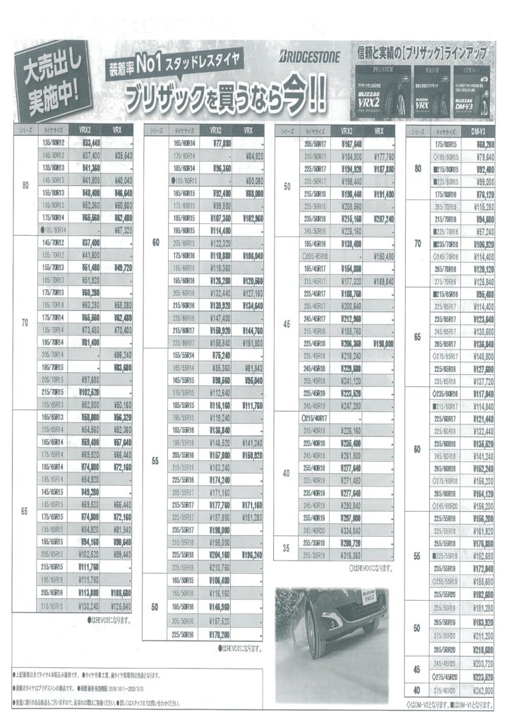 当日はブリヂストンタイヤ様に協力を頂きまして、タイヤを特別価格で販売します。