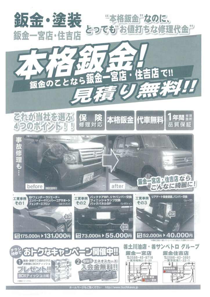 弊社でお車の鈑金塗装の取扱いを行っていることをもっと沢山のお客様に知っていただきたいということで、各営業所で配布する案内を作成しました。