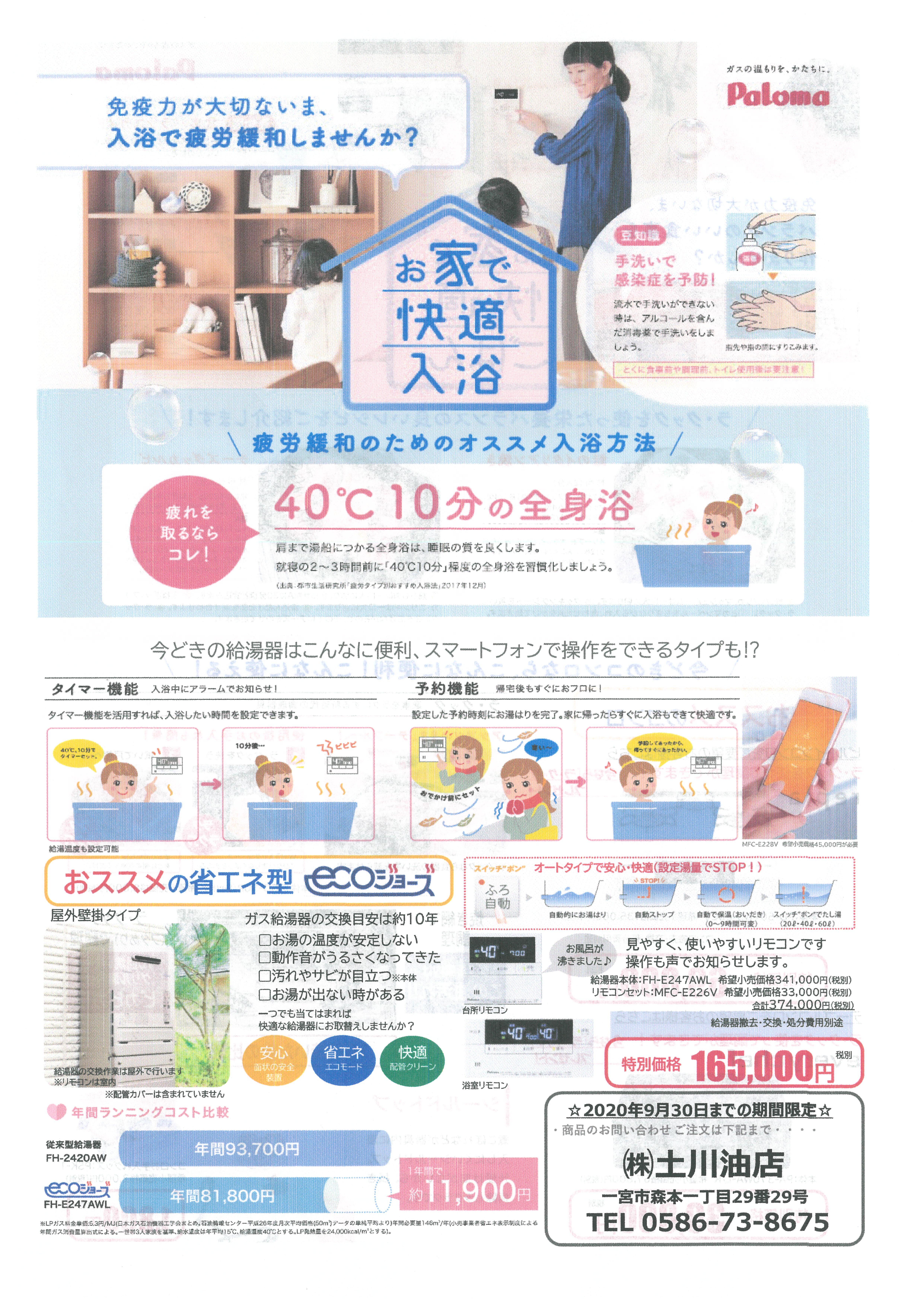 弊社のガス部門(一宮市森本1-29-29)ではガス器具の取扱いも行っています。この度Paloma様に協力いただき案内を作成しましたので紹介させていただきます。
