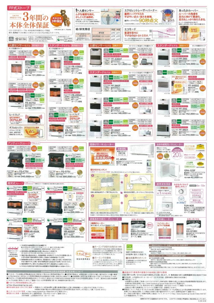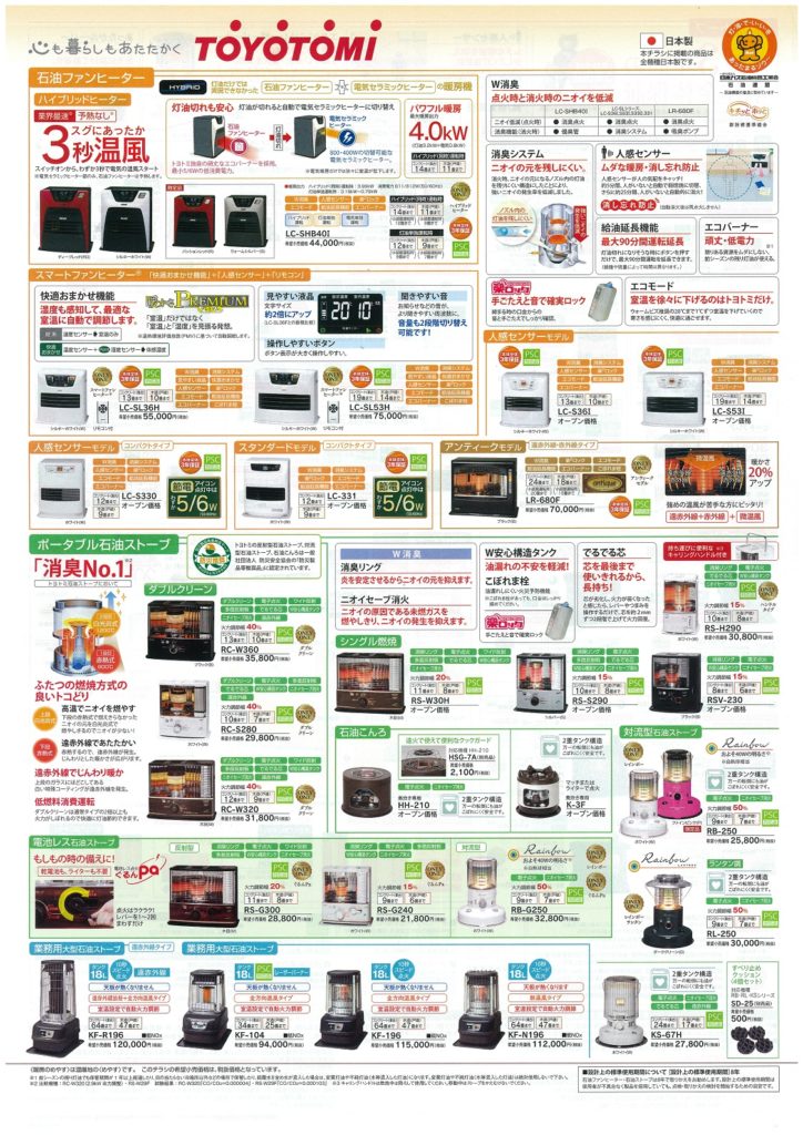 石油ファンヒーターや石油ストーブの案内を作成しました。