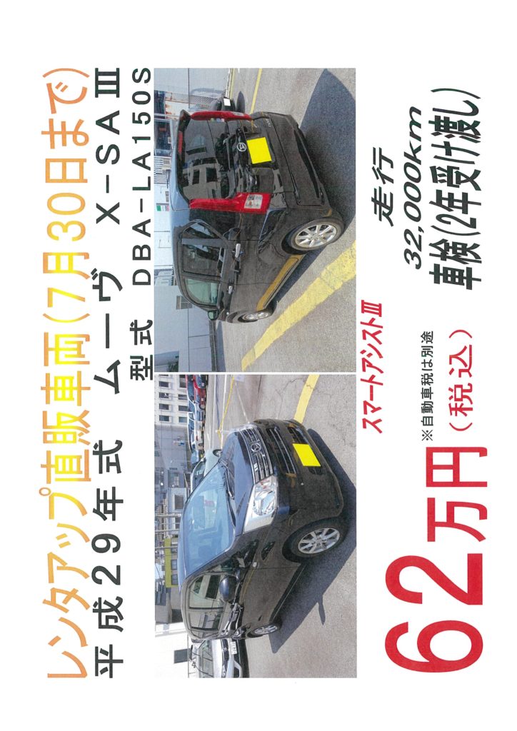 弊社の車両売買部門ではレンタカーとして私どもの営業所で利用している車両を中古車として販売しています。