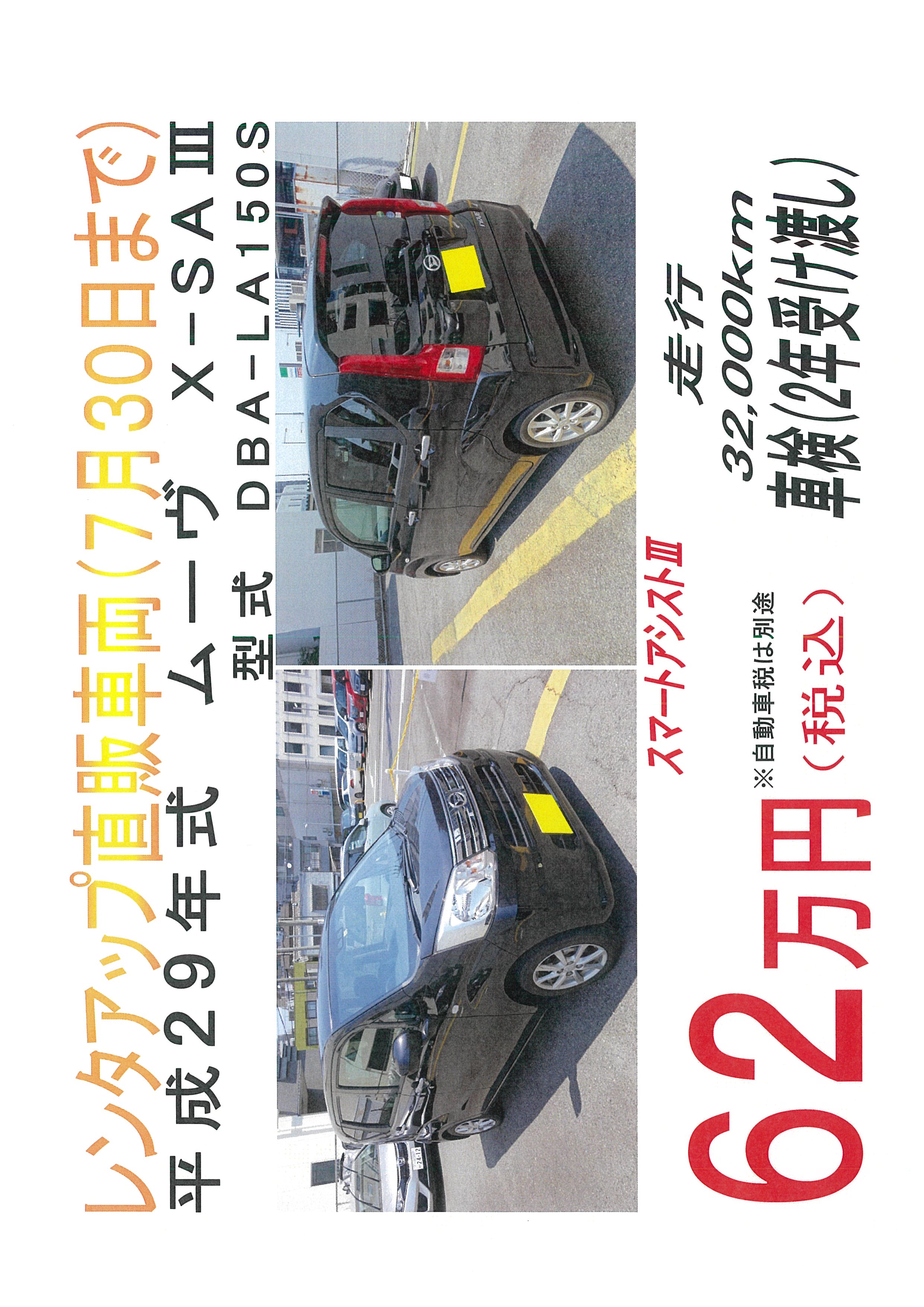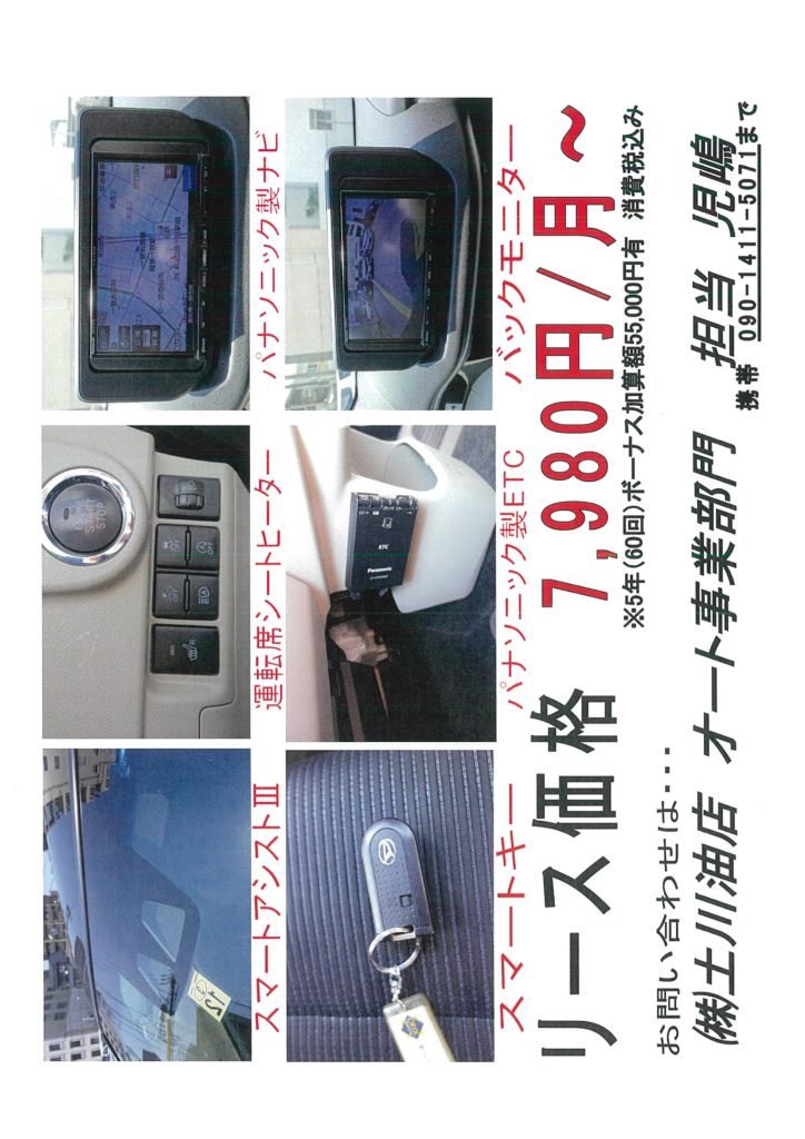 新車で購入しレンタカーで使用していた期間は、弊社が責任をもってメンテナンスしておりましたので、お客様に自信をもってお勧めさせていただきます。
