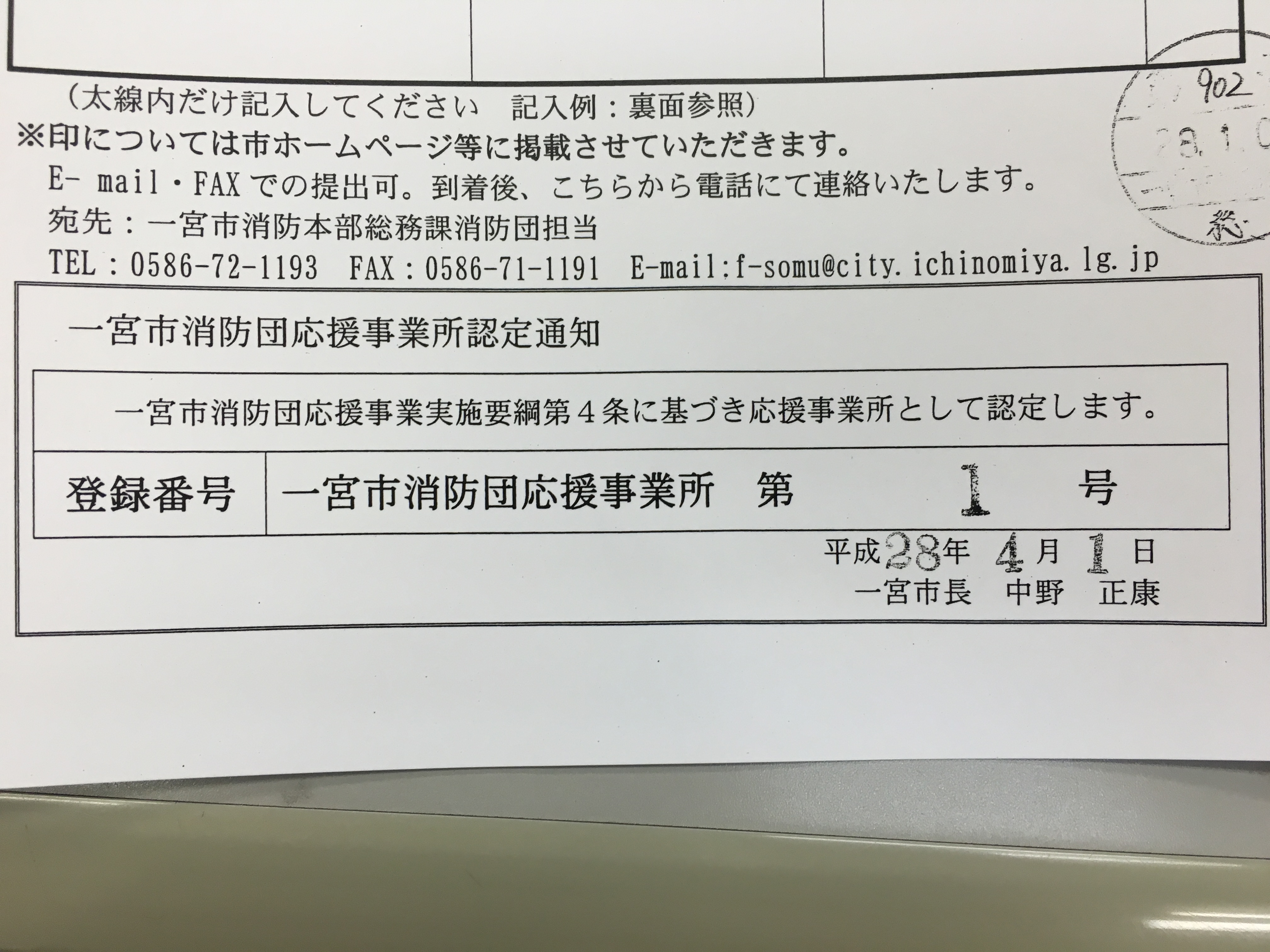 オリックスレンタカー一宮駅前店(栄3)は愛知県が募集している「あいち消防団応援の店」に登録されました。