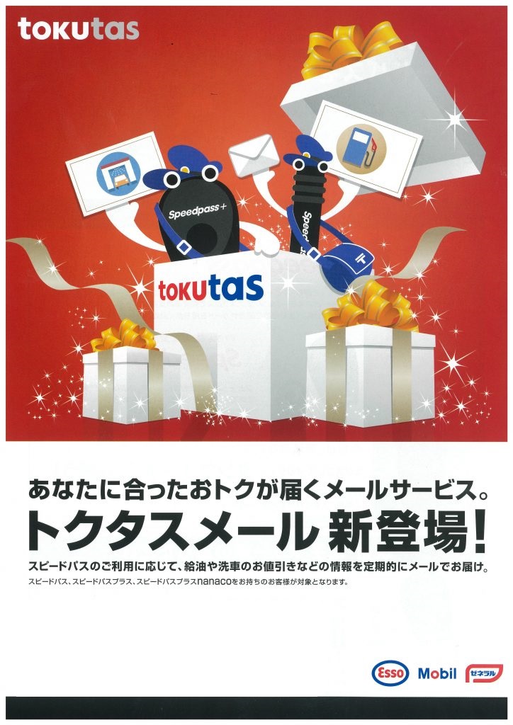 セルフィーユ江南サービスステーション(ESSO/江南市赤童子町良原133)ではこの度トクタスメールサービスを開始しました。