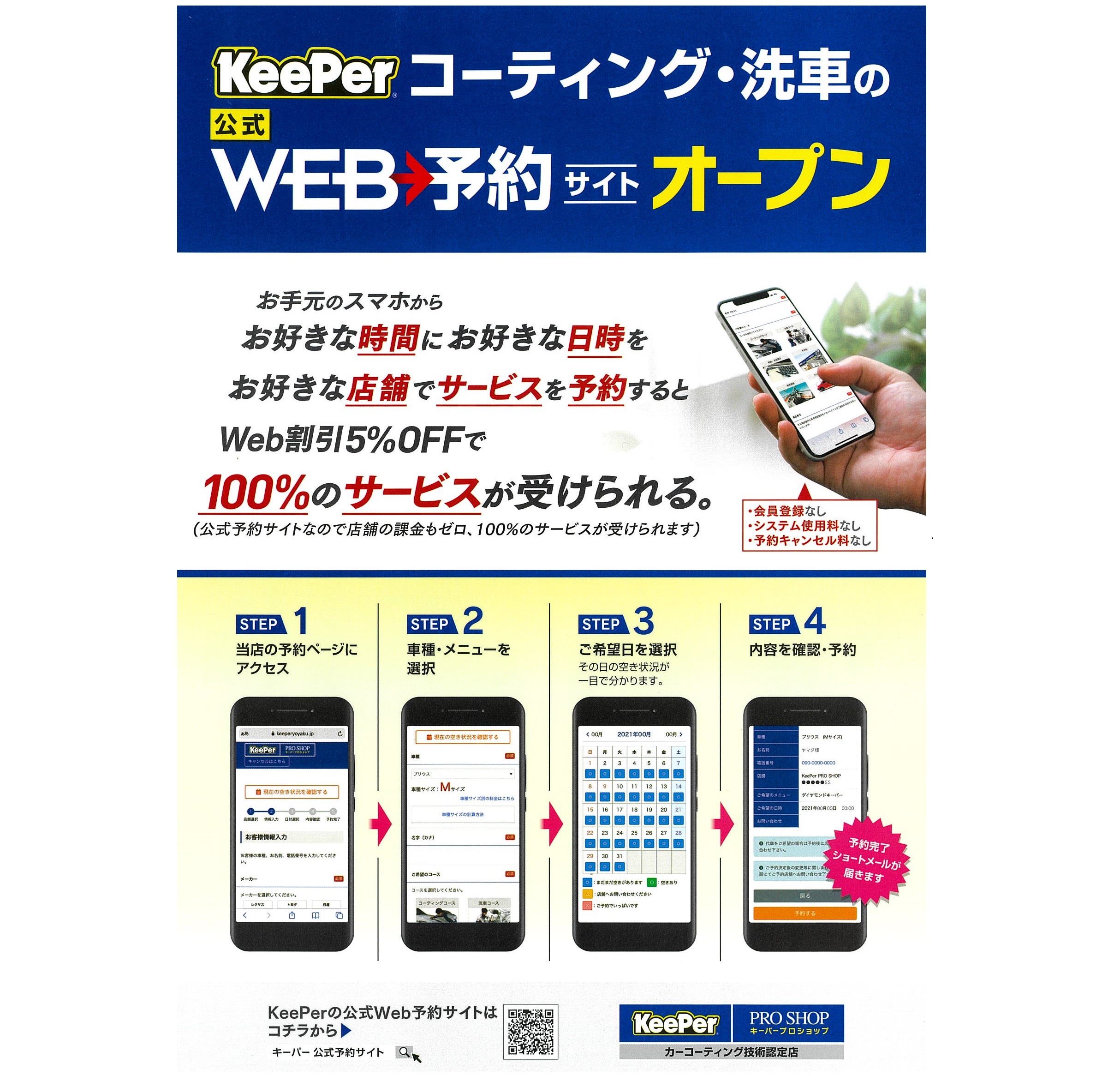弊社はカーコーティングのKeePerの施工に力を入れて運営していますが、この度Webで予約ができる様になりましたので紹介させていただきます。