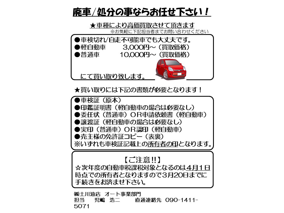 弊社の車両売買部門ではレンタカーとして私どもの営業所で利用している車両を中古車として販売しています。