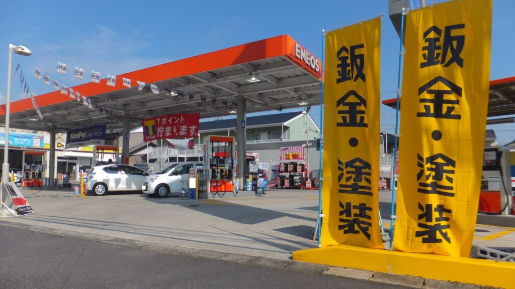 師勝サービスステーション(北名古屋市高田寺砂場5-1)です。同店では昨年末の改装後コーティングブームを設け快洗Jrという機械を導入し、手洗い洗車、キーパーコーティングの施工に力を入れて運営しています。